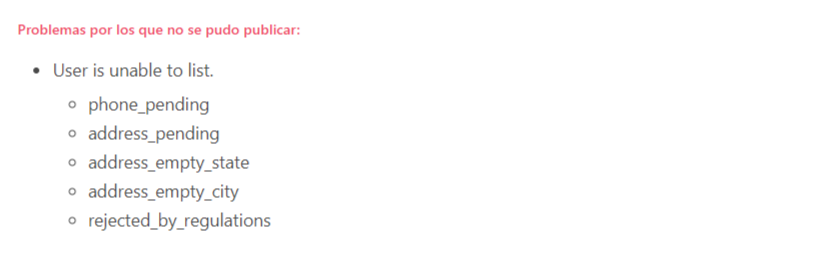 Si obtienes User is unable to list al intentar exportar a MercadoLibre es porque tu cuenta es nueva y no has pasado el proceso de validación de usuarios de MercadoLibre.
